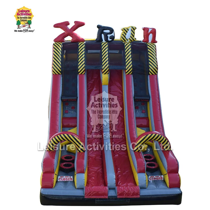 Leisure Activities® ialah Pengeluar dan Pembekal Slaid Lorong Berkembar Xtreme Fun Run Inflatable Profesional. Ia mempunyai reka bentuk slaid selari dwi, ​​menggabungkan keseronokan, kapasiti besar dan ketahanan. Ia mudah dikendalikan dan sesuai untuk semua peringkat umur.